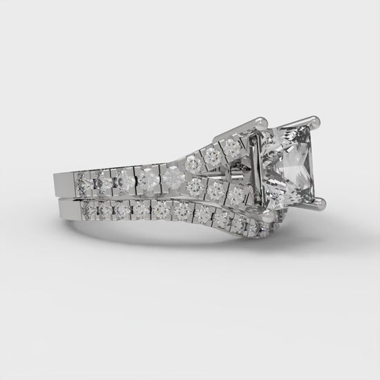 3.4 cttw Princess Cut White Sapphire Bridal Set - Solid White Gold Engagement Ring & Wedding Band