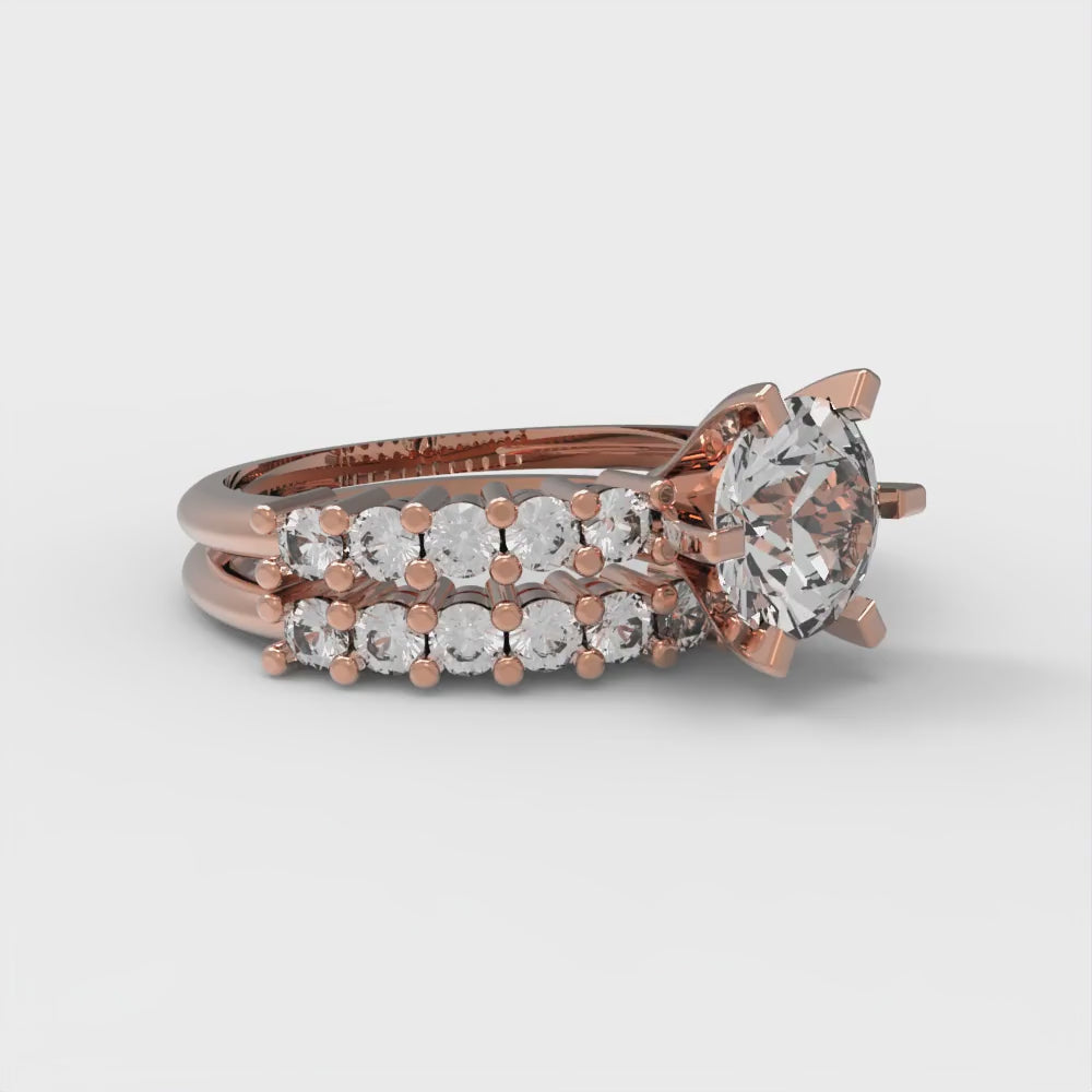 1.66 cttw Round Cut White Sapphire Bridal Set - Solid Rose Gold Engagement Ring & Wedding Band