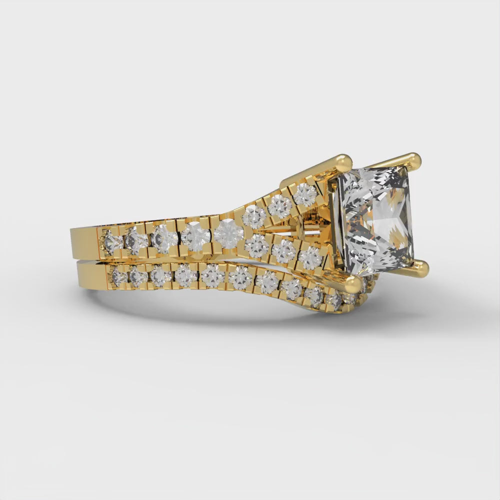 3.4 cttw Princess Cut White Sapphire Bridal Set - Solid Yellow Gold Engagement Ring & Wedding Band
