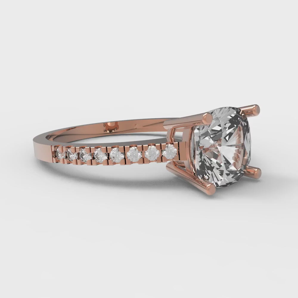 2.7 cttw White Sapphire Solitaire with Zirconia Simulated Diamond Accents Engagement Ring - Solid Gold (Cushion Cut,6.5mm)