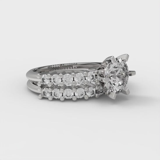 1.66 cttw Round Cut White Sapphire Bridal Set - Solid White Gold Engagement Ring & Wedding Band