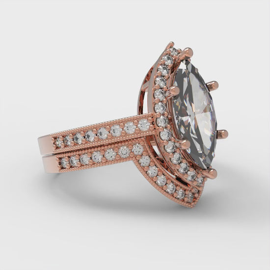 2.4875 cttw Marquise Cut White Sapphire Bridal Set - Solid Rose Gold Engagement Ring & Wedding Band