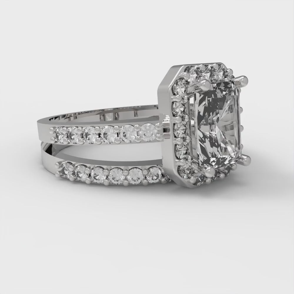 1.92 cttw White Sapphire Solitaire with Zirconia Simulated Diamond Accents Engagement Ring - Solid Gold (Emerald Cut,7.5X5.5mm)