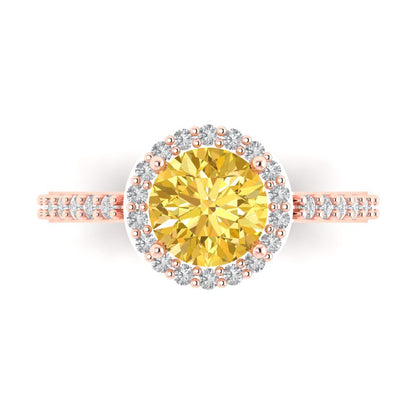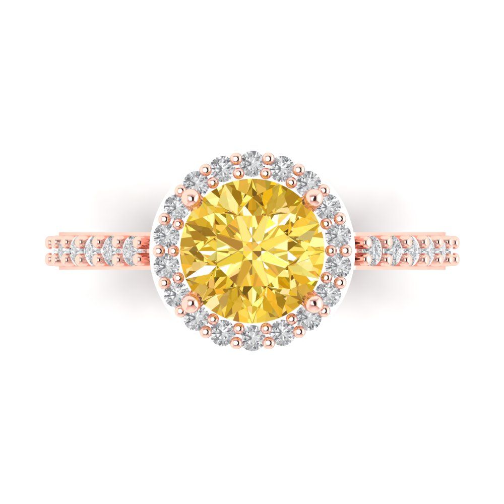 1.86 cttw Zirconia Simulated Yellow Diamond Hidden Halo Engagement Ring - Solid Gold (VVS1, Round Cut,7.5mm)