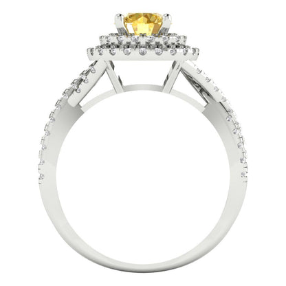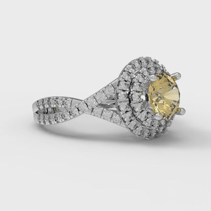 1.3125 cttw Zirconia Simulated Yellow Diamond Hidden Halo Engagement Ring - Solid Gold (VVS1, Round Cut,6mm)