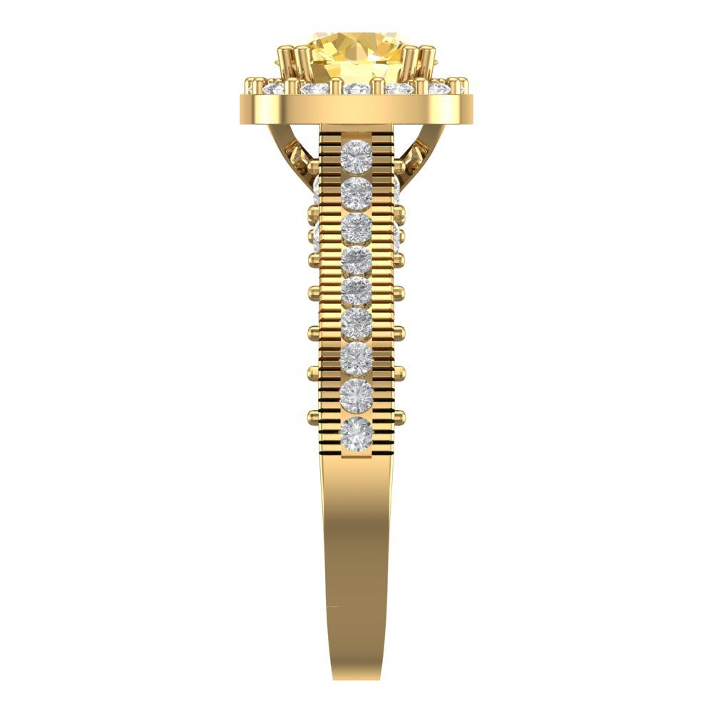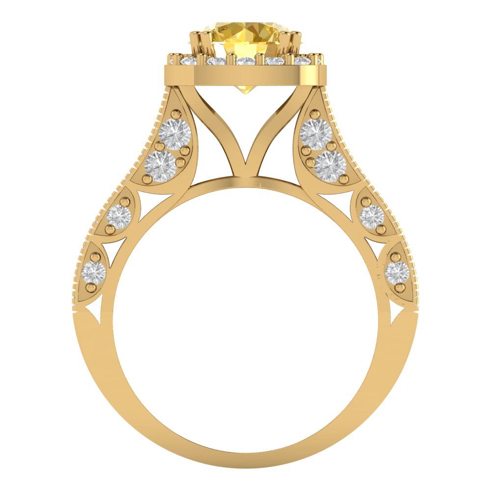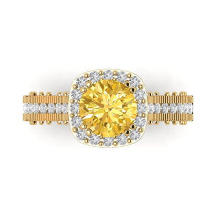 2.37 cttw Zirconia Simulated Yellow Diamond Hidden Halo Engagement Ring - Solid Gold (VVS1, Round Cut,7.5mm)