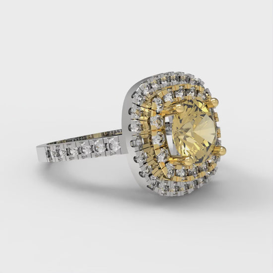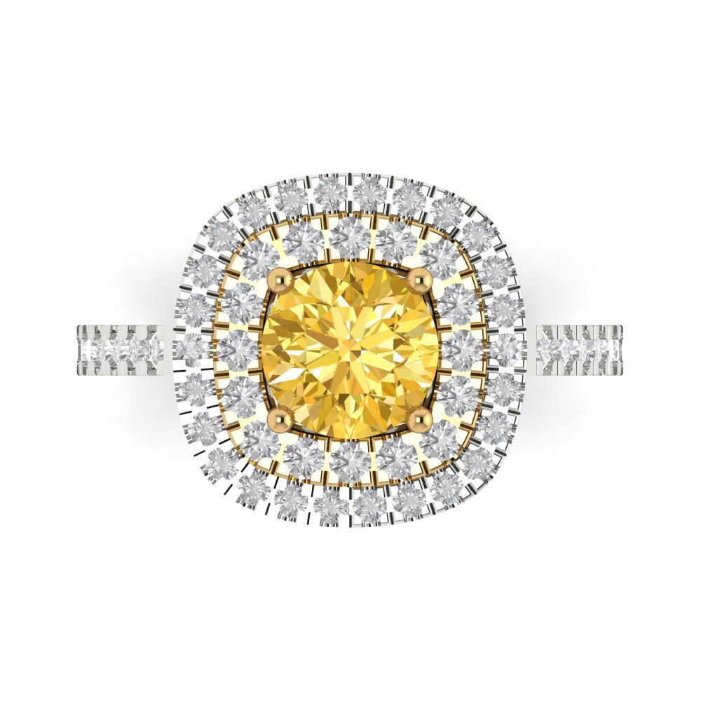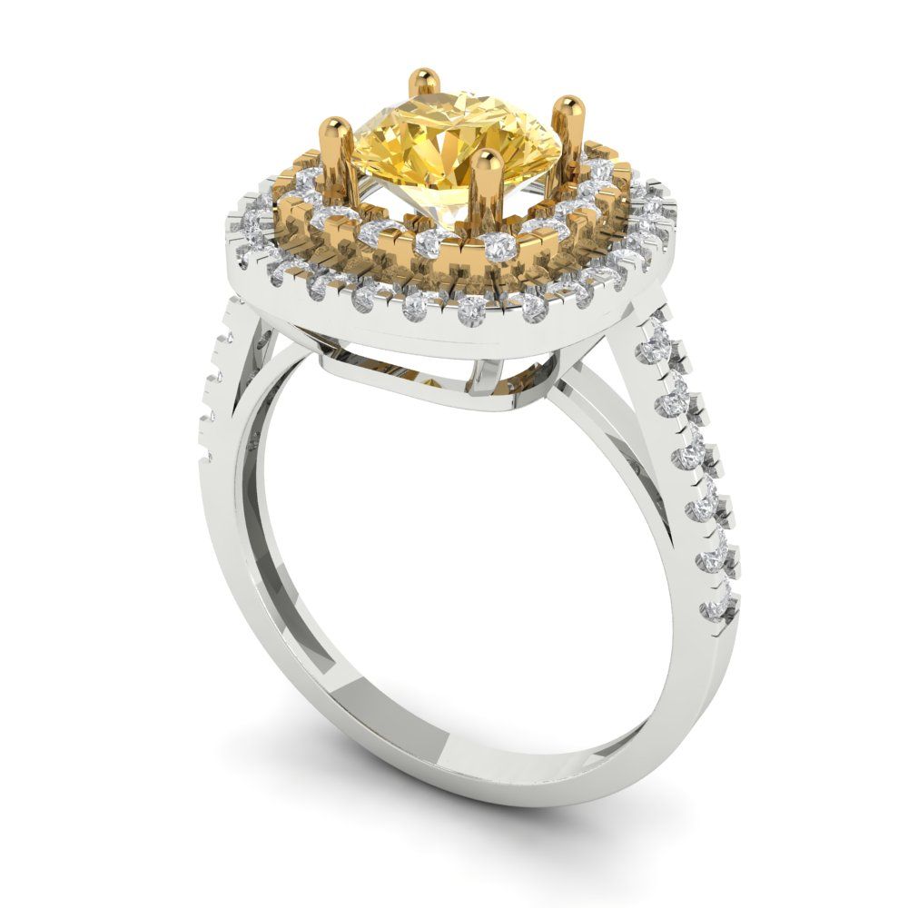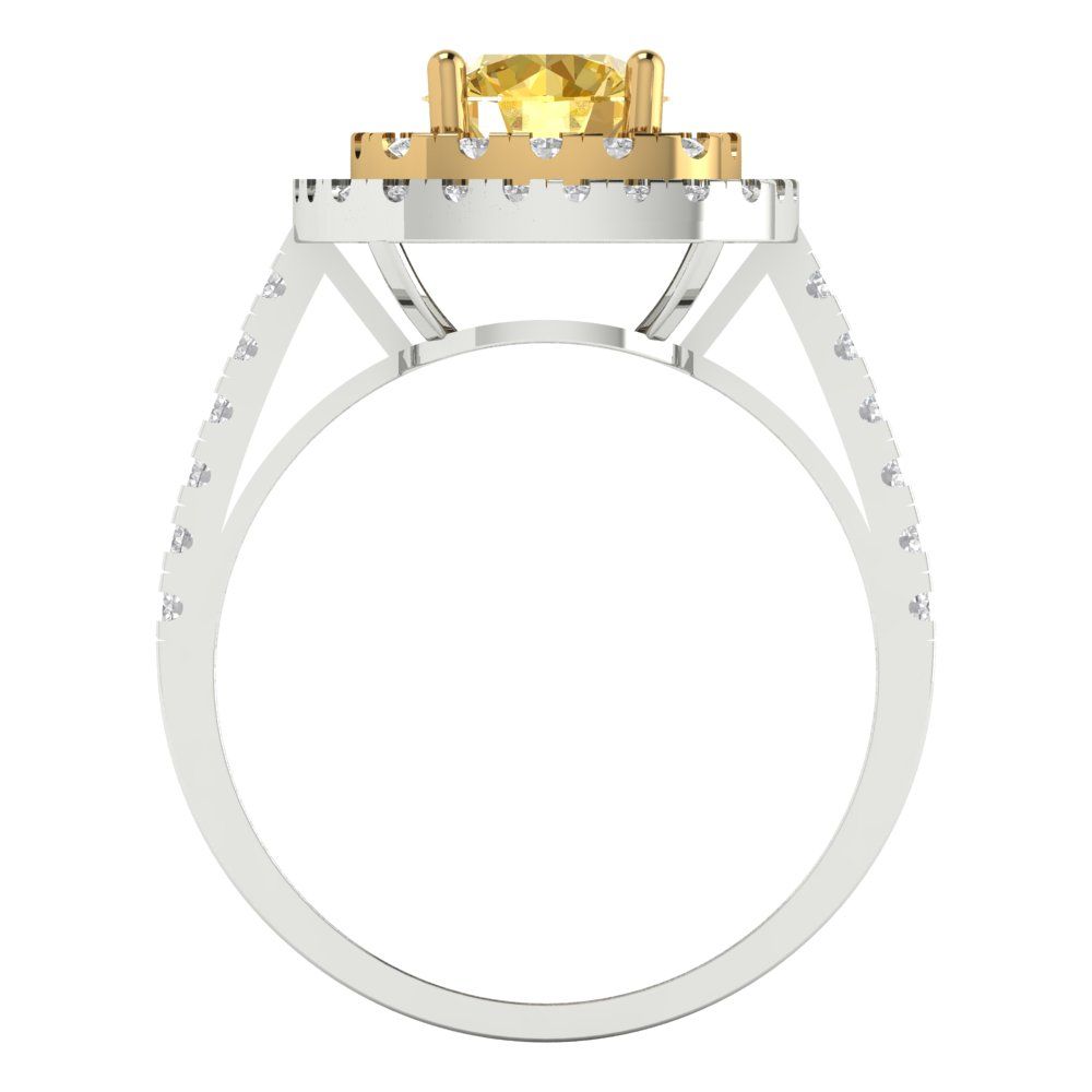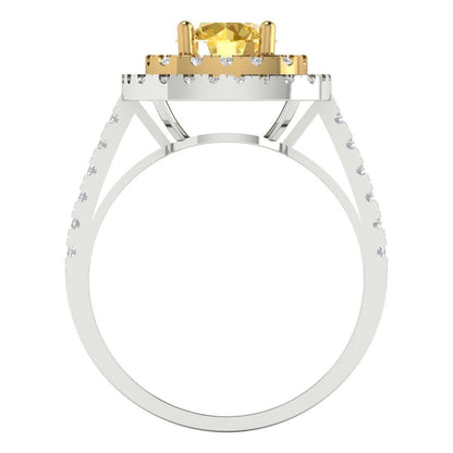 1.615 cttw Zirconia Simulated Yellow Diamond Hidden Halo Engagement Ring - Solid Gold (VVS1, Round Cut,6.5mm)