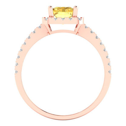 1.86 cttw Zirconia Simulated Yellow Diamond Hidden Halo Engagement Ring - Solid Gold (VVS1, Emerald Cut,7.5x5.5mm)