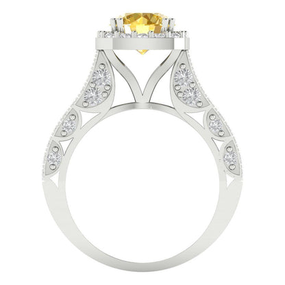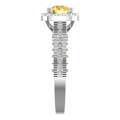 2.37 cttw Zirconia Simulated Yellow Diamond Hidden Halo Engagement Ring - Solid Gold (VVS1, Round Cut,7.5mm)