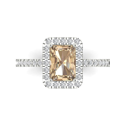 1.86 cttw Yellow Moissanite Hidden Halo Engagement Ring - Solid Gold (Emerald Cut,7.5x5.5mm)