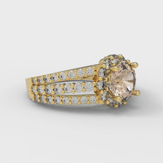 1.83 cttw Yellow Moissanite Hidden Halo Engagement Ring - Solid Gold (Round Cut,6.5mm)