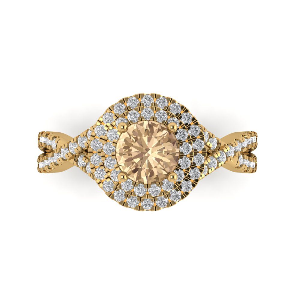 1.3125 cttw Yellow Moissanite Hidden Halo Engagement Ring - Solid Gold (Round Cut,6mm)