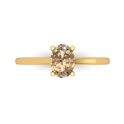 1 cttw Yellow Moissanite Solitaire Engagement Ring - Solid Gold (Oval Cut,7x5mm)