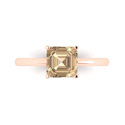 1.5 cttw Yellow Moissanite Solitaire Engagement Ring - Solid Gold (Asscher Cut,6.5mm)