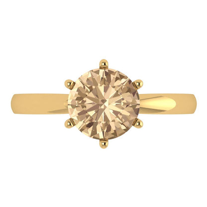2 cttw Yellow Moissanite Solitaire Engagement Ring - Solid Gold (Round Cut,8.0mm)