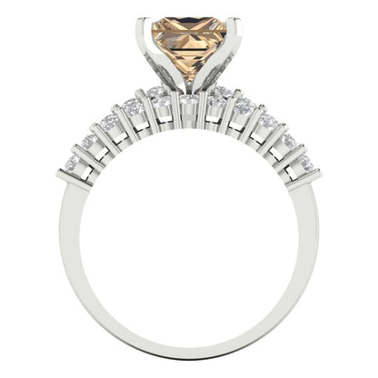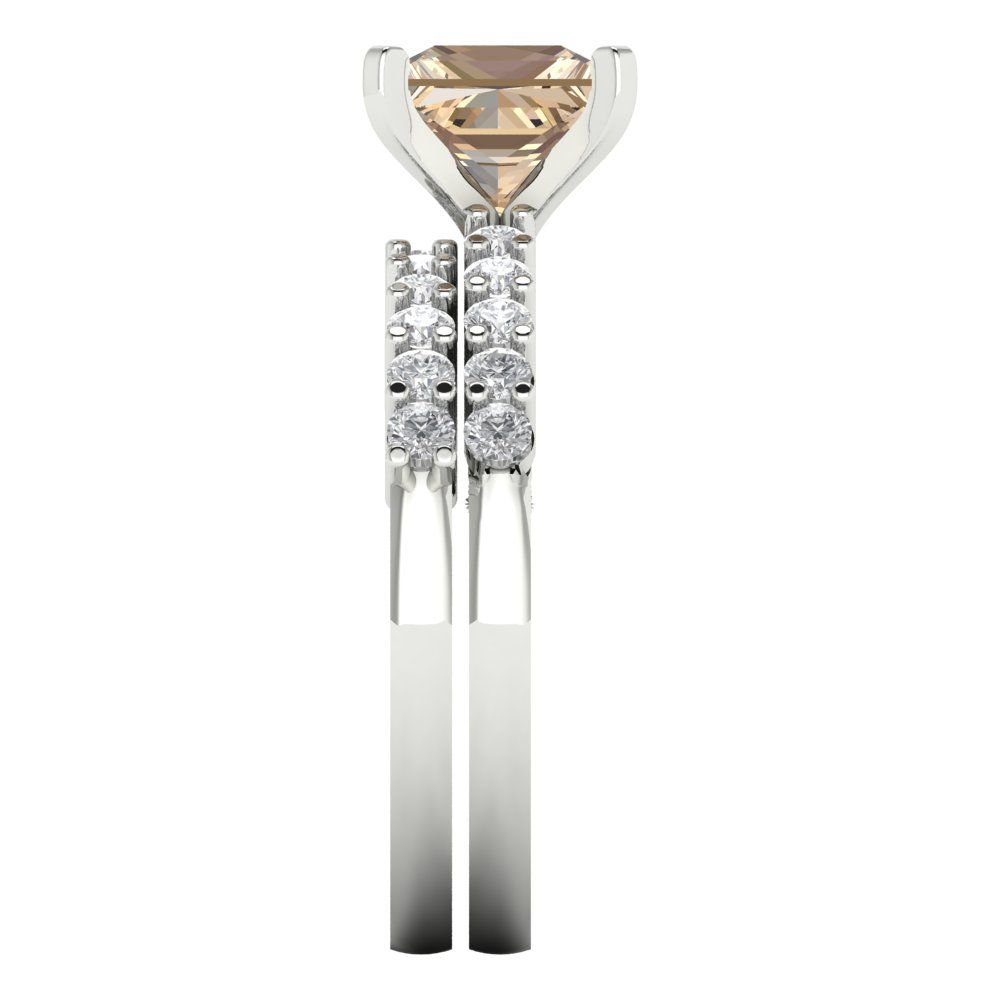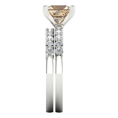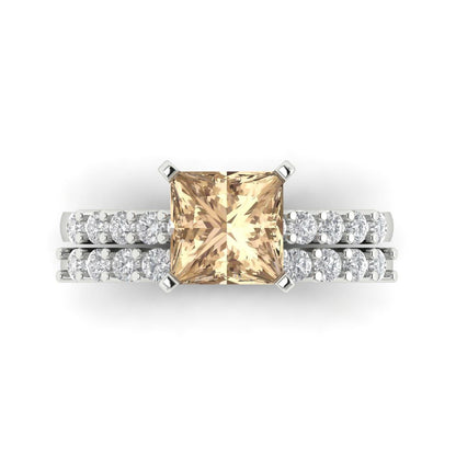 2.63 cttw Princess Cut Yellow Moissanite Bridal Set - Solid White Gold Engagement Ring & Wedding Band