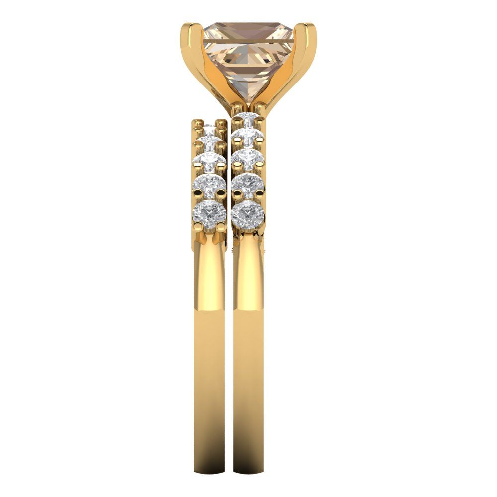 2.63 cttw Princess Cut Yellow Moissanite Bridal Set - Solid Yellow Gold Engagement Ring & Wedding Band