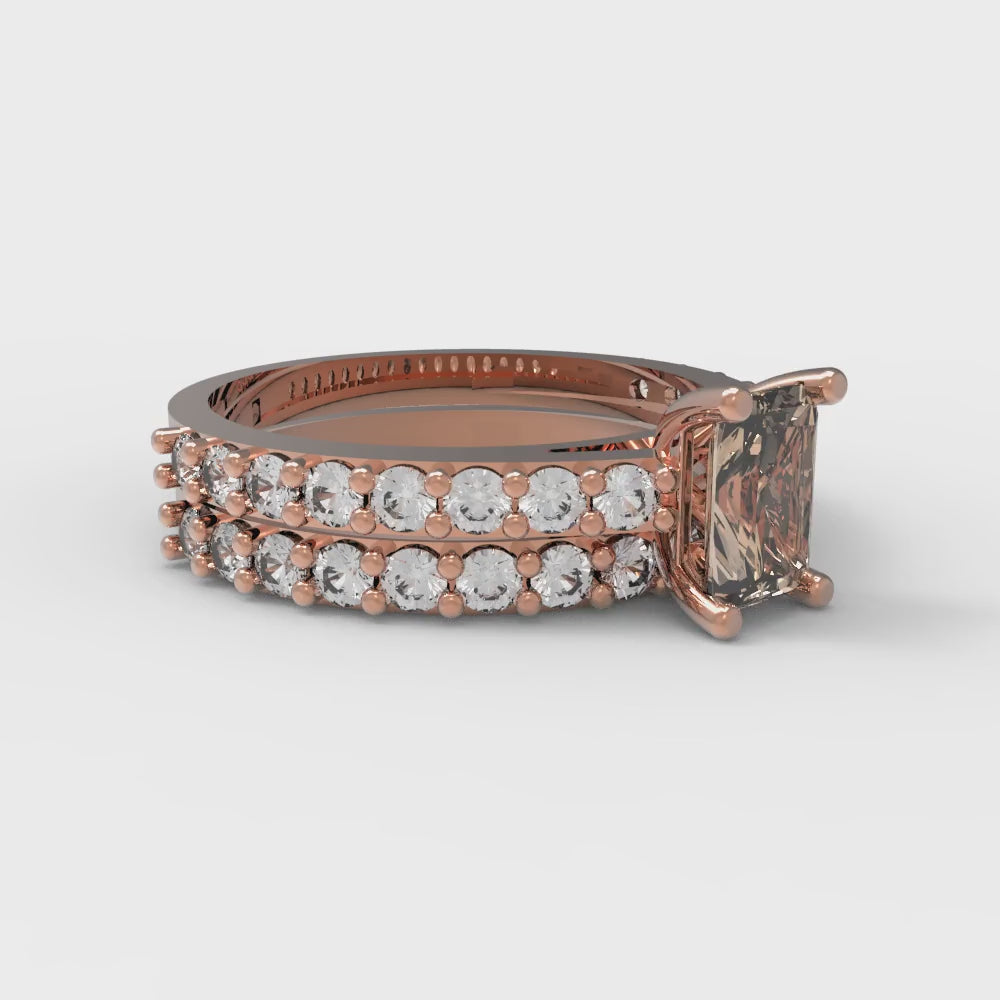 1.325 cttw Emerald Cut Yellow Moissanite Bridal Set - Solid Rose Gold Engagement Ring & Wedding Band