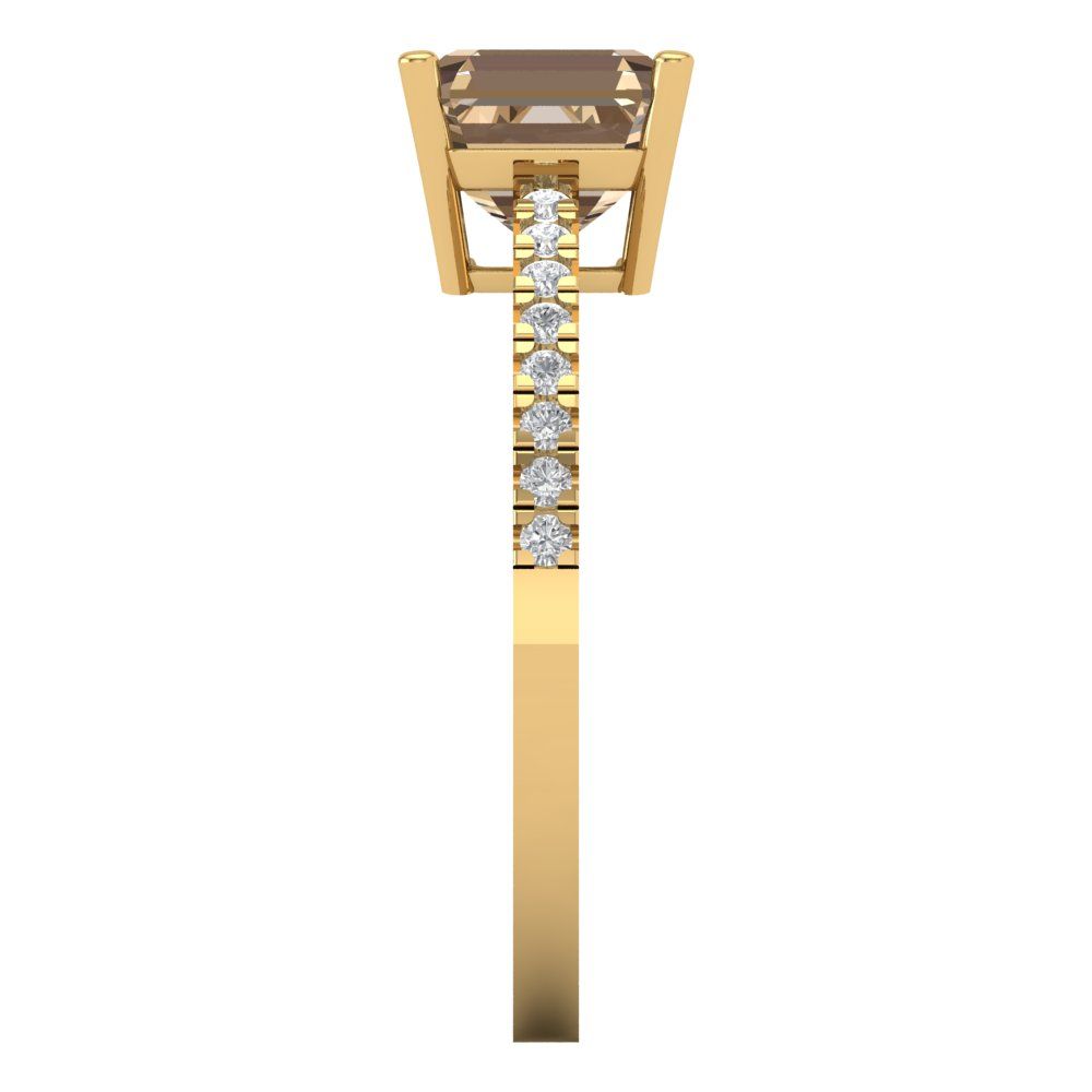 2.7 cttw Yellow Moissanite Solitaire with Zirconia Simulated Diamond Accents Engagement Ring - Solid Gold (Cushion Cut,6.5mm)