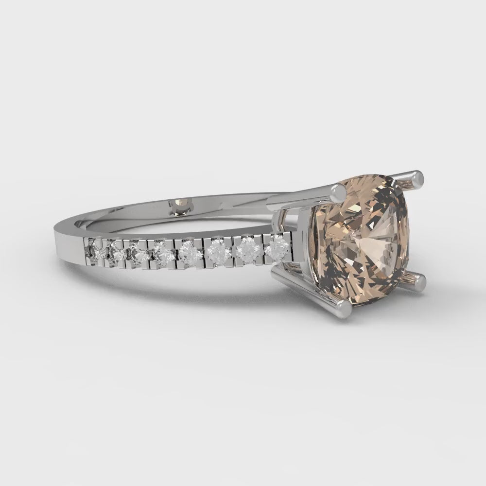 2.7 cttw Yellow Moissanite Solitaire with Zirconia Simulated Diamond Accents Engagement Ring - Solid Gold (Cushion Cut,6.5mm)
