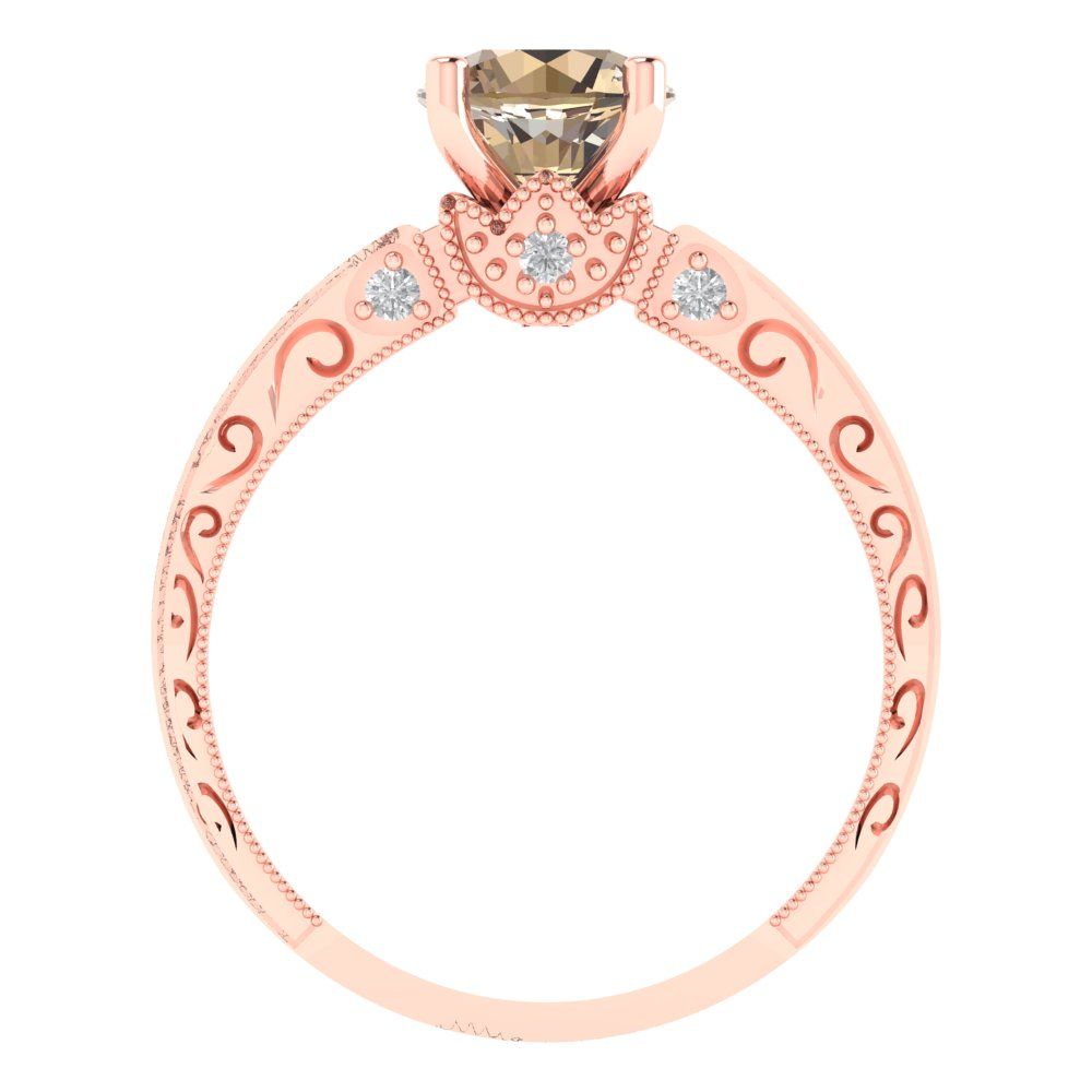 1.06 cttw Yellow Moissanite Solitaire with Zirconia Simulated Diamond Accents Engagement Ring - Solid Gold (Round Cut,6.5mm)