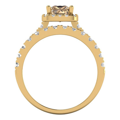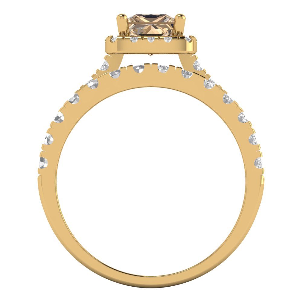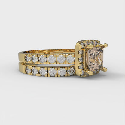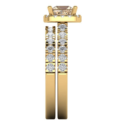 1.56 cttw Princess Cut Yellow Moissanite Bridal Set - Solid Yellow Gold Engagement Ring & Wedding Band