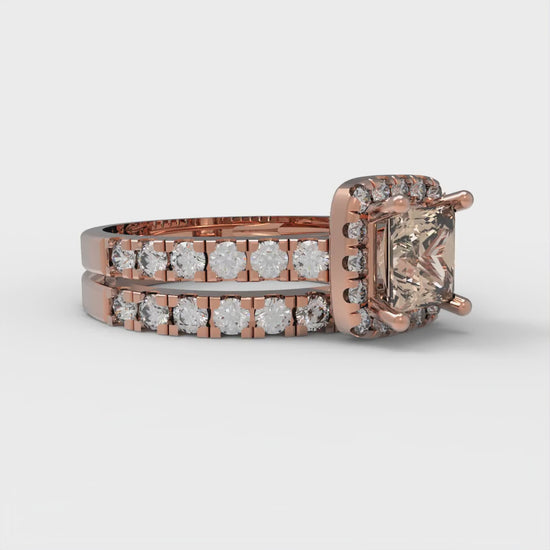 1.56 cttw Princess Cut Yellow Moissanite Bridal Set - Solid Rose Gold Engagement Ring & Wedding Band
