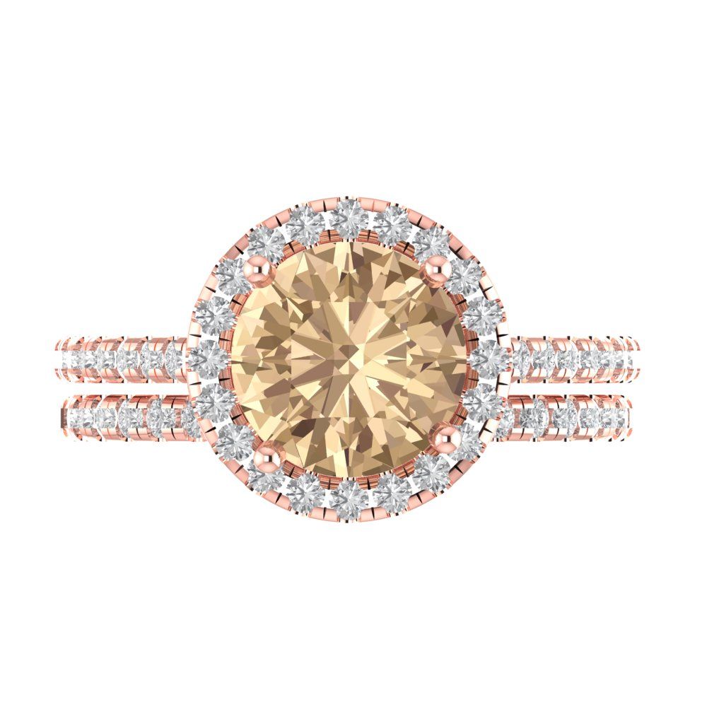 2.52 cttw Round Cut Yellow Moissanite Bridal Set - Solid Rose Gold Engagement Ring & Wedding Band