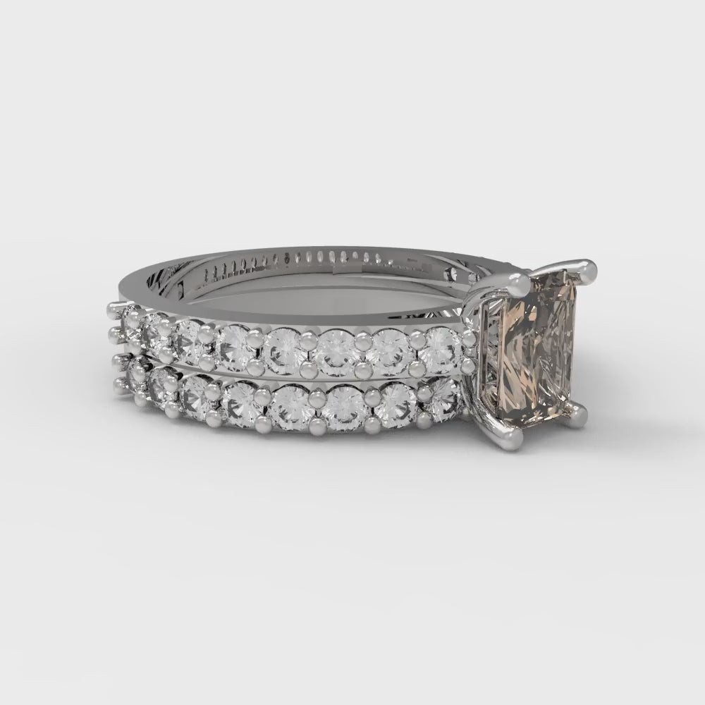 1.325 cttw Emerald Cut Yellow Moissanite Bridal Set - Solid White Gold Engagement Ring & Wedding Band