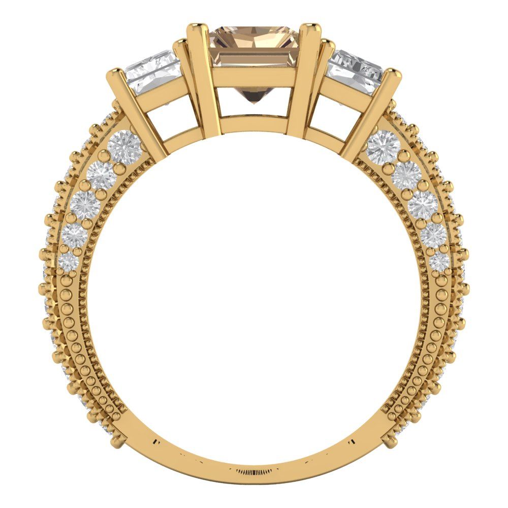 3.61 cttw Yellow Moissanite Three-Stone Engagement Ring - Solid Gold (Emerald Cut,8x6mm)