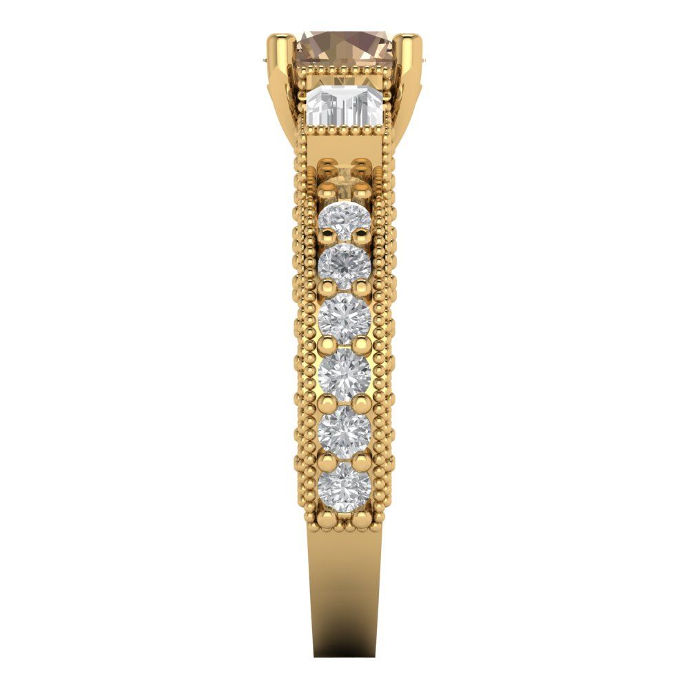 2.33 cttw Yellow Moissanite Three-Stone Engagement Ring - Solid Gold (Round Cut,6.5mm)