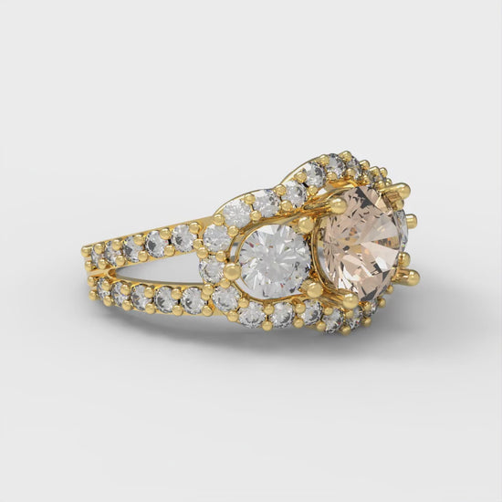 2.16 cttw Yellow Moissanite Three-Stone Engagement Ring - Solid Gold (Round Cut,6.5mm)