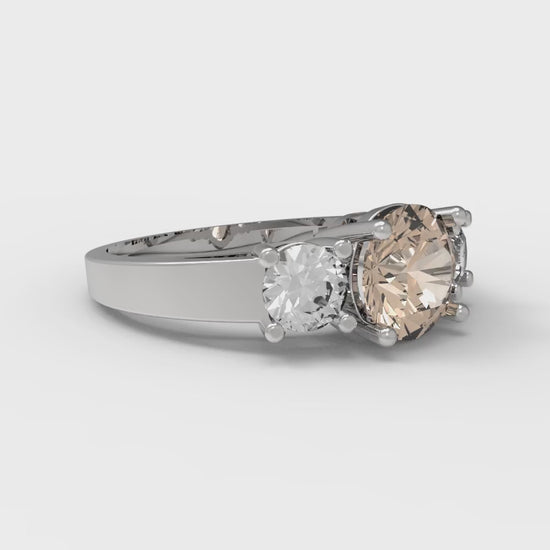 1.5 cttw Yellow Moissanite Three-Stone Engagement Ring - Solid Gold (Round Cut,6.5mm)