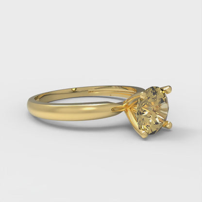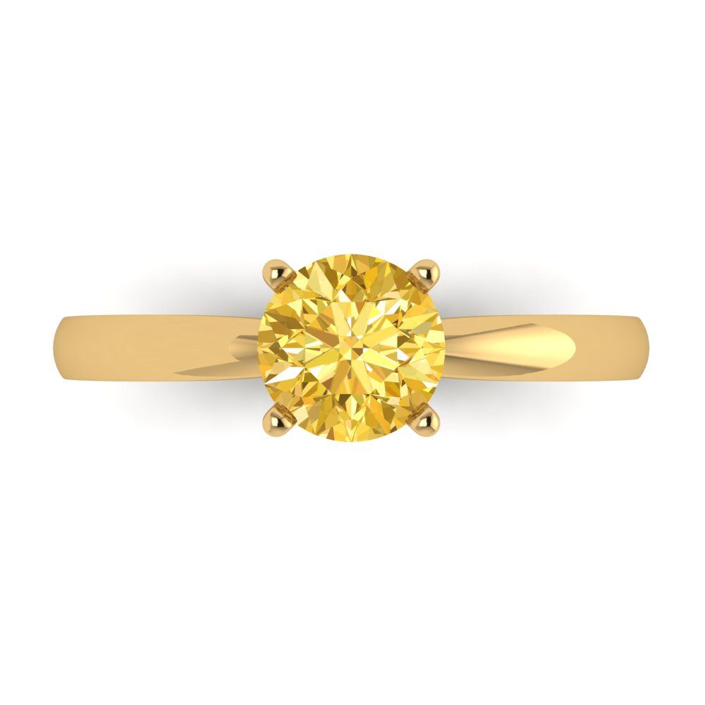 1 cttw Zirconia Simulated Yellow Diamond Solitaire Engagement Ring - Solid Gold (VVS1, Round Cut,6.5mm)