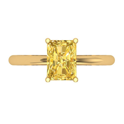 1.75 cttw Zirconia Simulated Yellow Diamond Solitaire Engagement Ring - Solid Gold (VVS1, Radiant Cut,7.5x5.5mm)