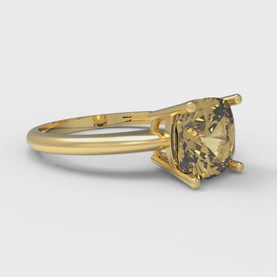 2 cttw Zirconia Simulated Yellow Diamond Solitaire Engagement Ring - Solid Gold (VVS1, Cushion Cut,7mm)