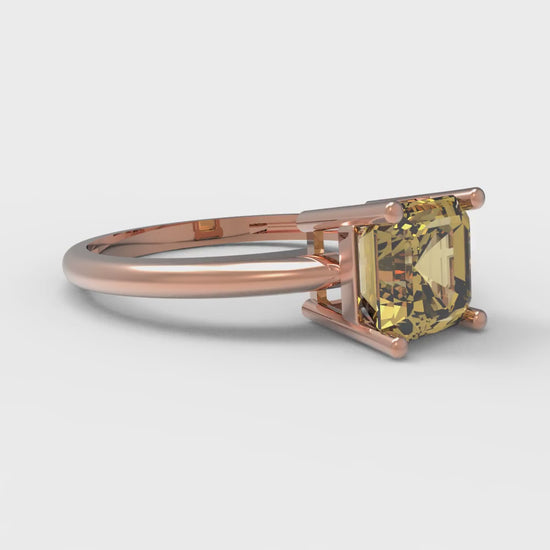 1 cttw Zirconia Simulated Yellow Diamond Solitaire Engagement Ring - Solid Gold (VVS1, Asscher Cut,6mm)