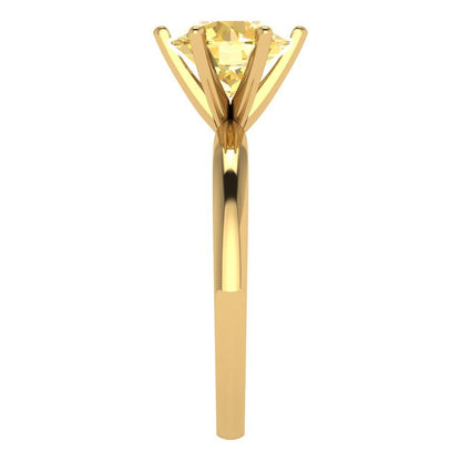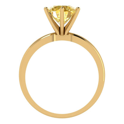 2 cttw Zirconia Simulated Yellow Diamond Solitaire Engagement Ring - Solid Gold (VVS1, Round Cut,8.0mm)