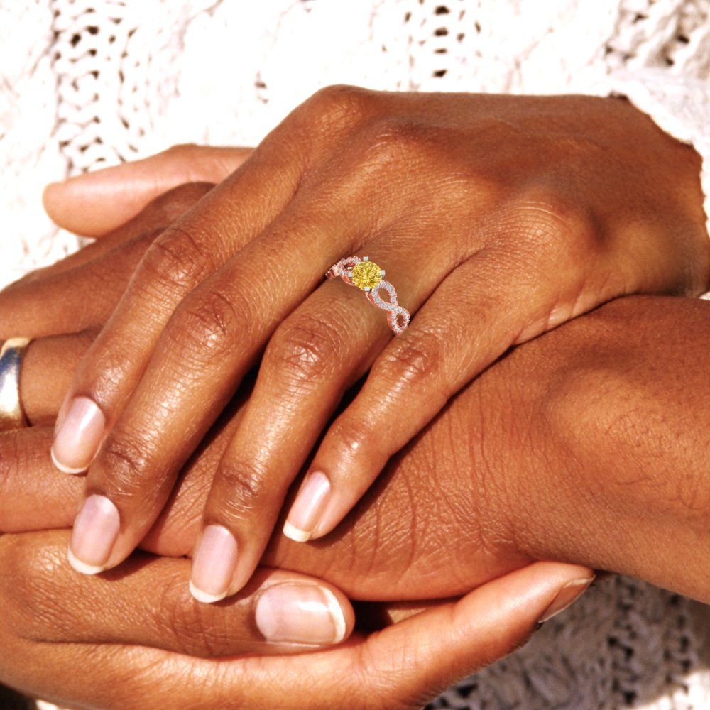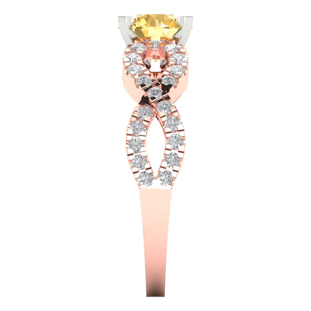 1.42 cttw Zirconia Simulated Yellow Diamond Solitaire with Zirconia Simulated Diamond Accents Engagement Ring - Solid Gold (VVS1, Round Cut,6.5mm)