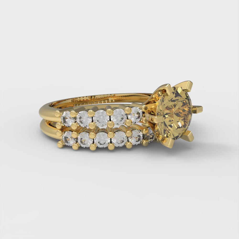 1.66 cttw Round Cut Simulated Yellow Diamond Bridal Set - Solid Yellow Gold Engagement Ring & Wedding Band