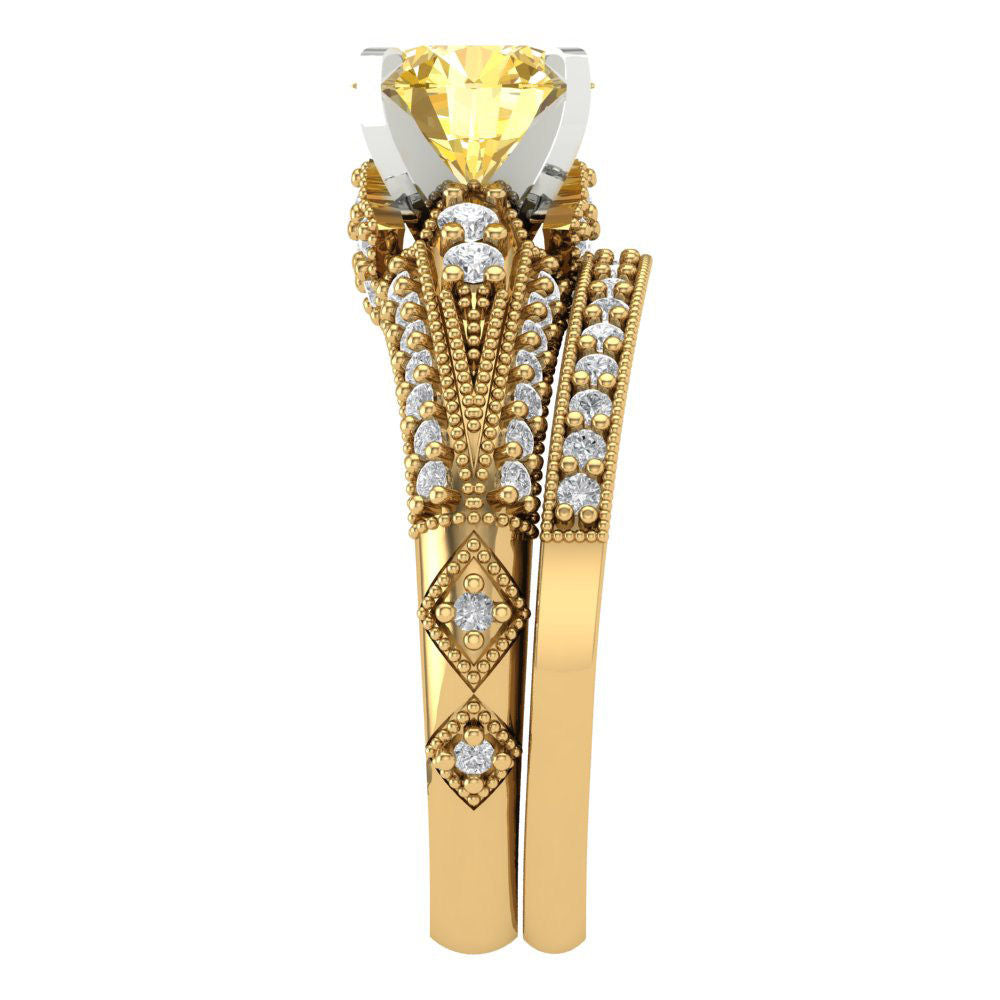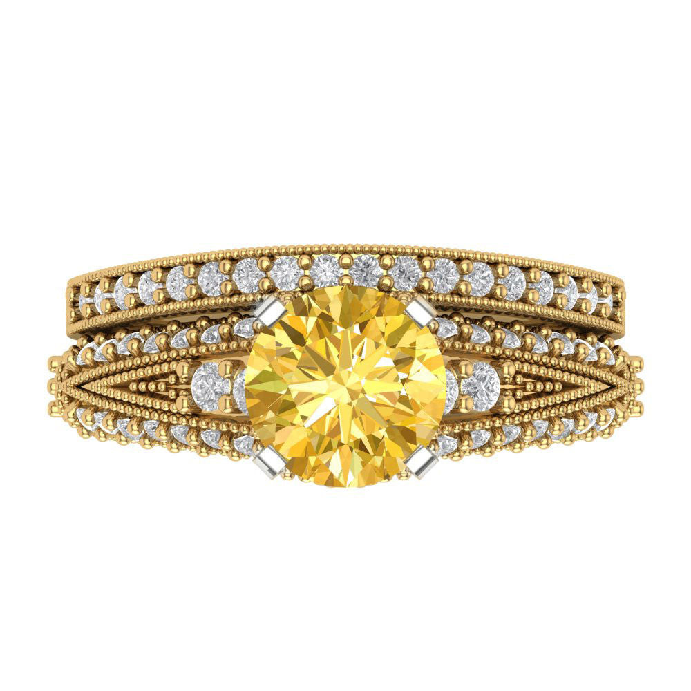 2.095 cttw Round Cut Simulated Yellow Diamond Bridal Set - Solid Yellow/White Gold Engagement Ring & Wedding Band