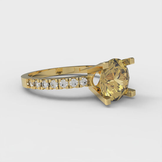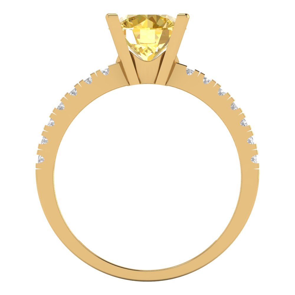 1.71 cttw Zirconia Simulated Yellow Diamond Solitaire with Zirconia Simulated Diamond Accents Engagement Ring - Solid Gold (VVS1, Round Cut,7.5mm)