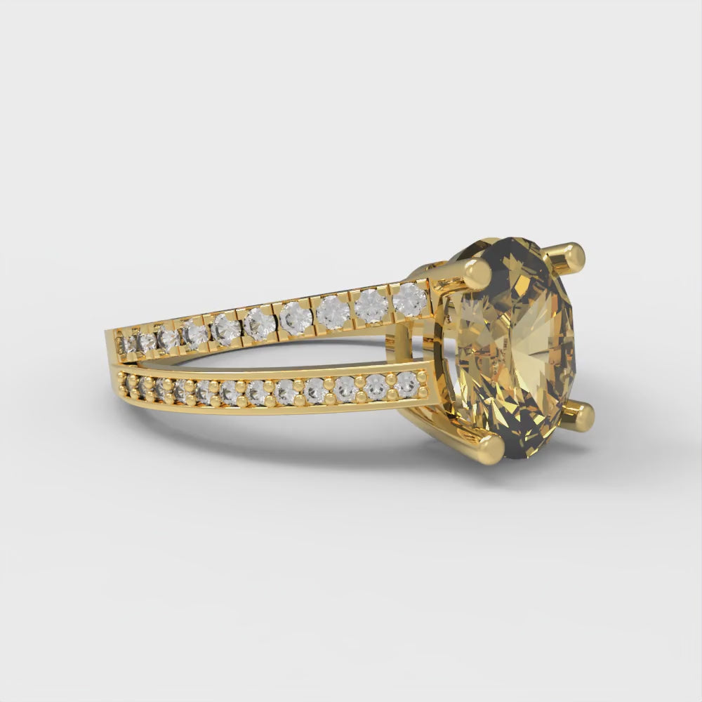 2.32 cttw Zirconia Simulated Yellow Diamond Solitaire with Zirconia Simulated Diamond Accents Engagement Ring - Solid Gold (VVS1, Oval Cut,9X7mm)