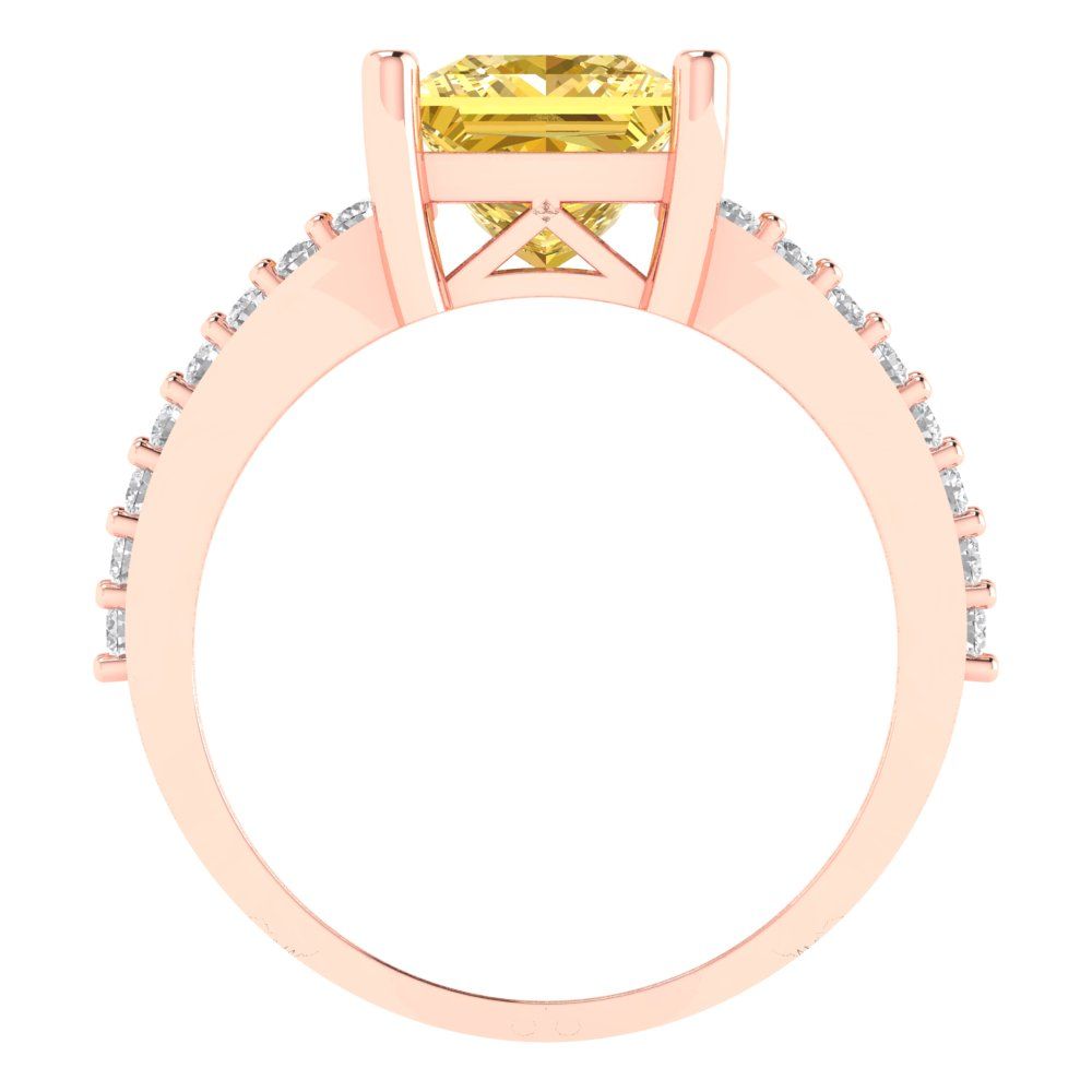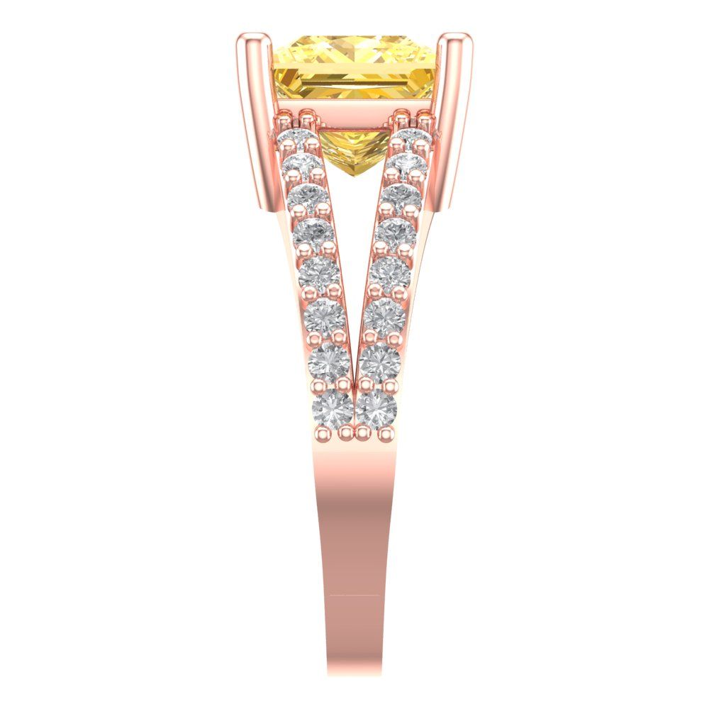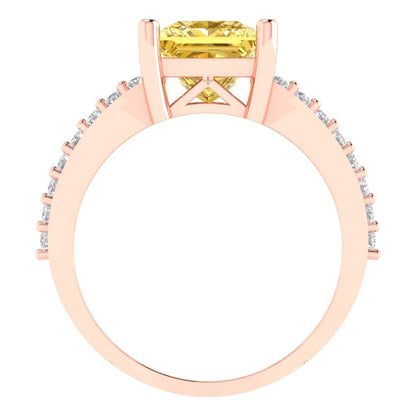 2.48 cttw Zirconia Simulated Yellow Diamond Solitaire with Zirconia Simulated Diamond Accents Engagement Ring - Solid Gold (VVS1, Princess Cut,7.0mm)