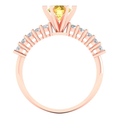 1.05 cttw Zirconia Simulated Yellow Diamond Solitaire with Zirconia Simulated Diamond Accents Engagement Ring - Solid Gold (VVS1, Round Cut,6.0mm)