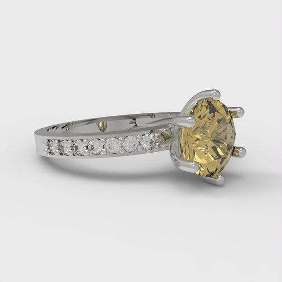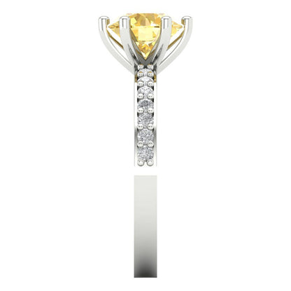 1.71 cttw Zirconia Simulated Yellow Diamond Solitaire with Zirconia Simulated Diamond Accents Engagement Ring - Solid Gold (VVS1, Round Cut,7.5mm)