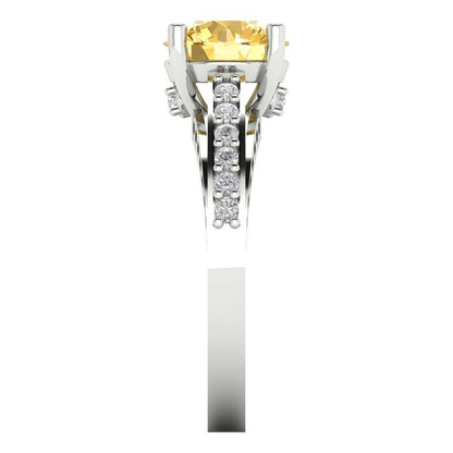 2.21 cttw Zirconia Simulated Yellow Diamond Solitaire with Zirconia Simulated Diamond Accents Engagement Ring - Solid Gold (VVS1, Round Cut,8.0mm)