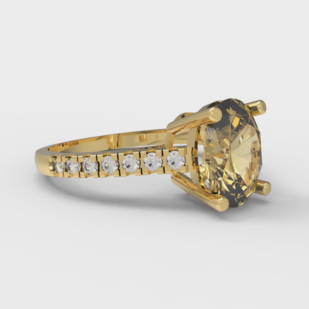 2.21 cttw Zirconia Simulated Yellow Diamond Solitaire with Zirconia Simulated Diamond Accents Engagement Ring - Solid Gold (VVS1, Oval Cut,9X7mm)