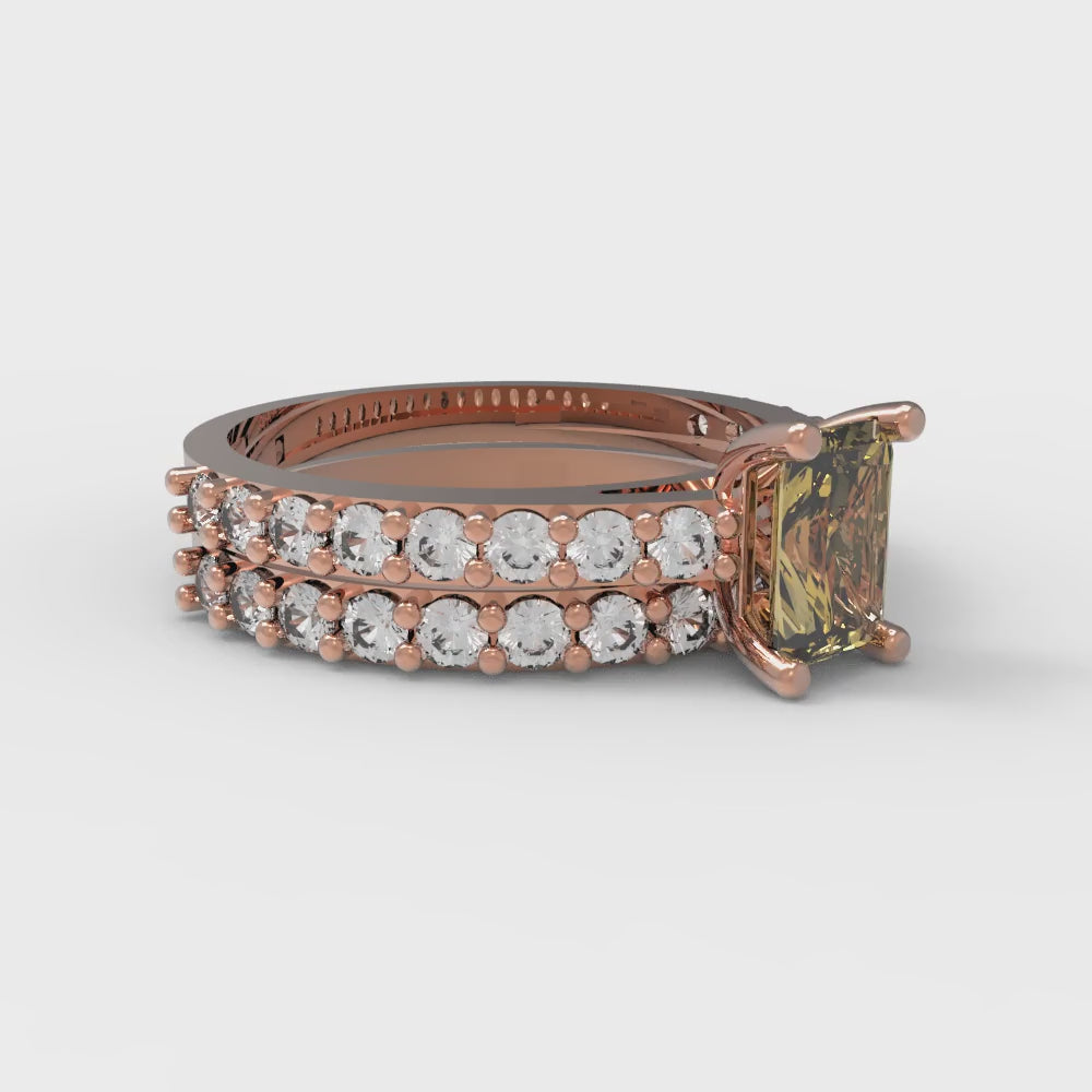 1.325 cttw Emerald Cut Simulated Yellow Diamond Bridal Set - Solid Rose Gold Engagement Ring & Wedding Band