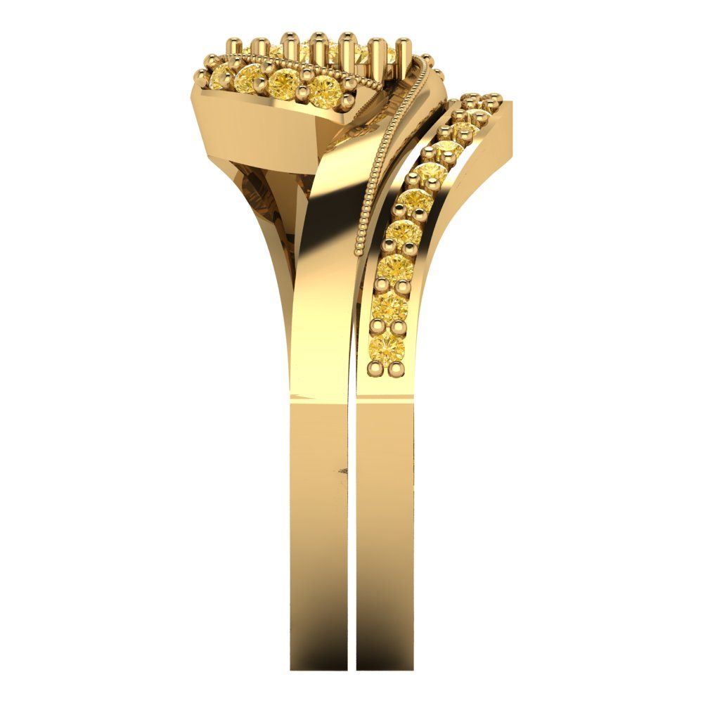0.4 cttw Round Cut Simulated Yellow Diamond Bridal Set - Solid Yellow Gold Engagement Ring & Wedding Band